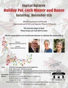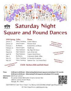 We dance Monday and Tuesday nights year around and most 1st, 3rd and 5th Saturdays, September thru May. Check the details carefully! We dance in 2 different halls and at different times.